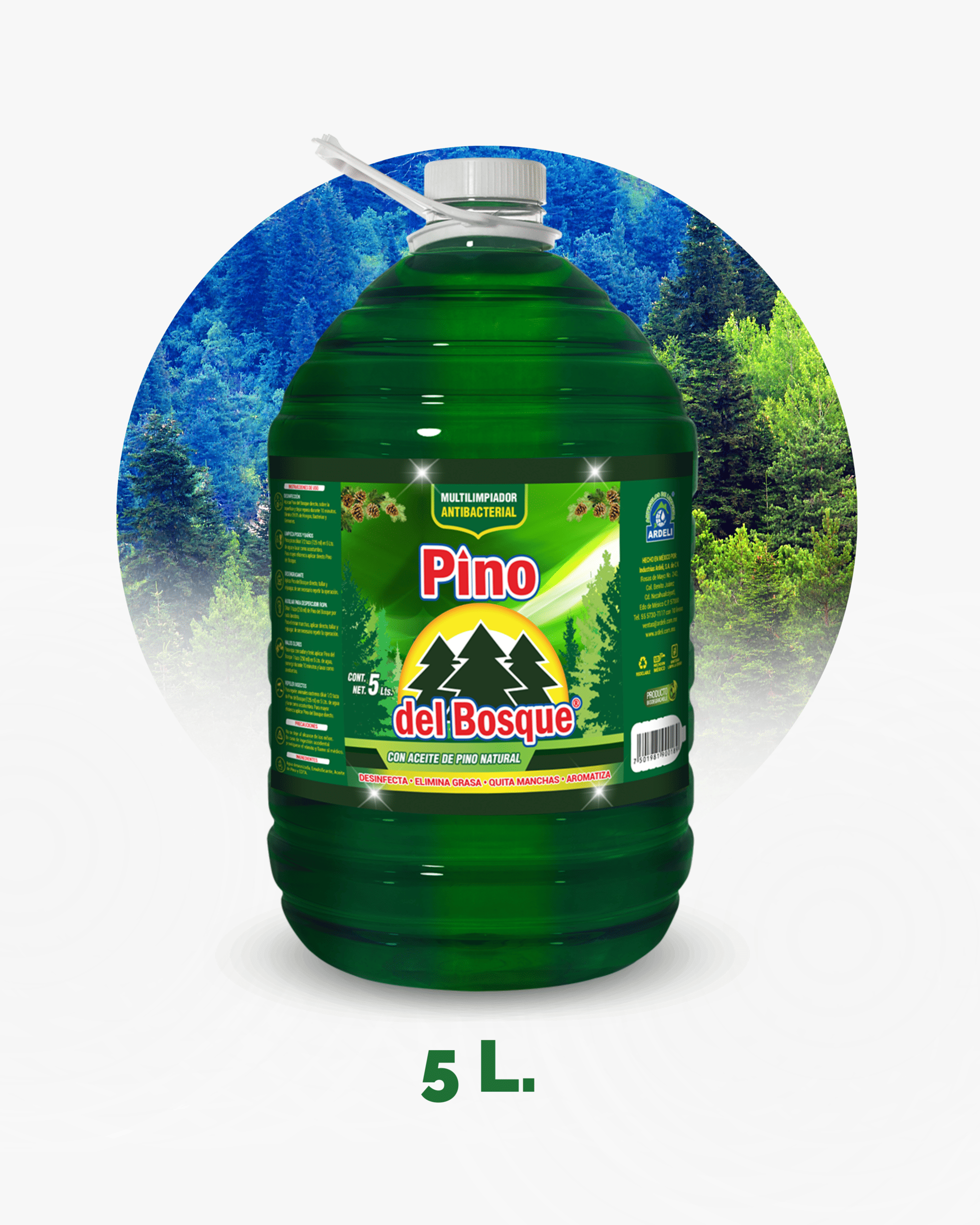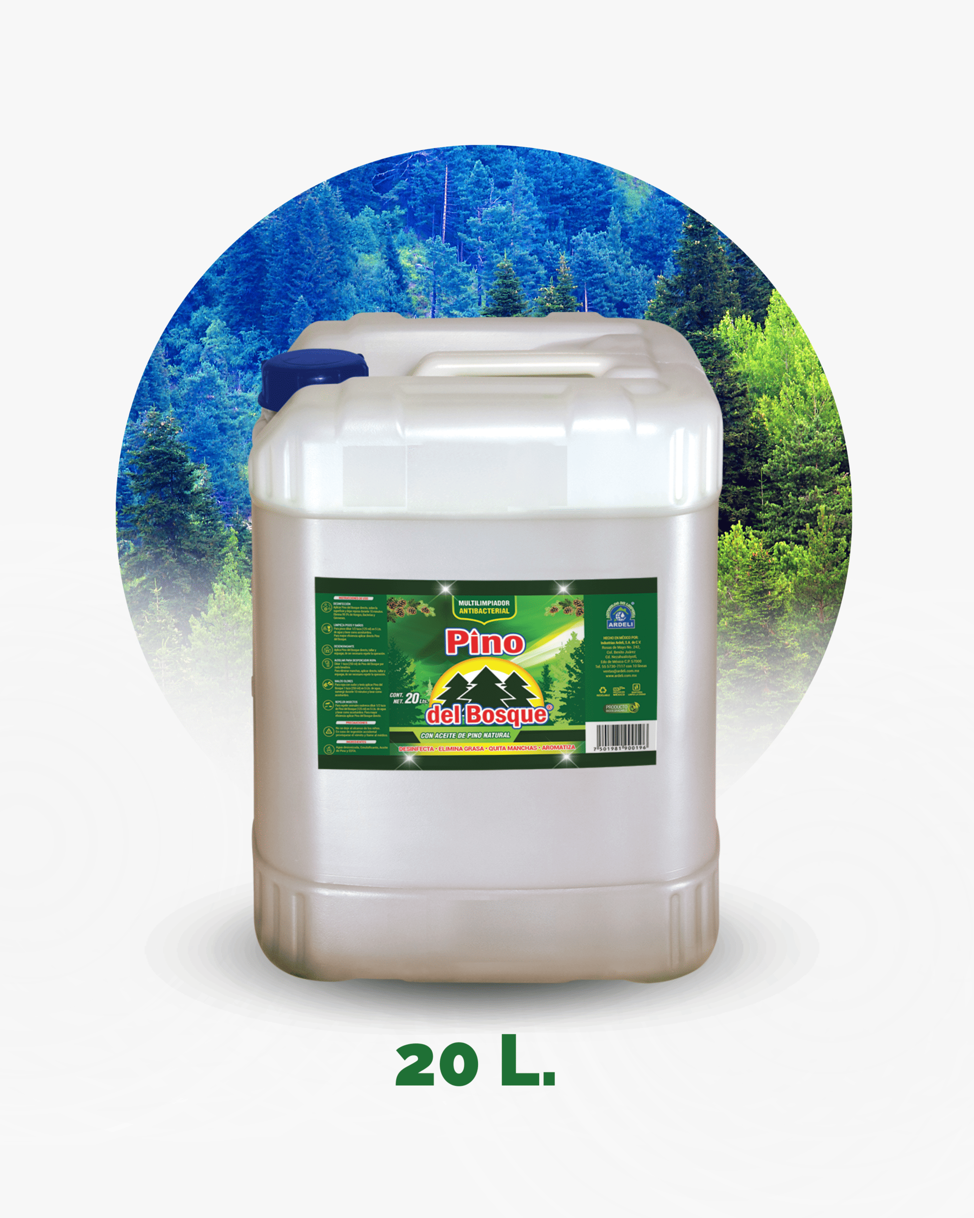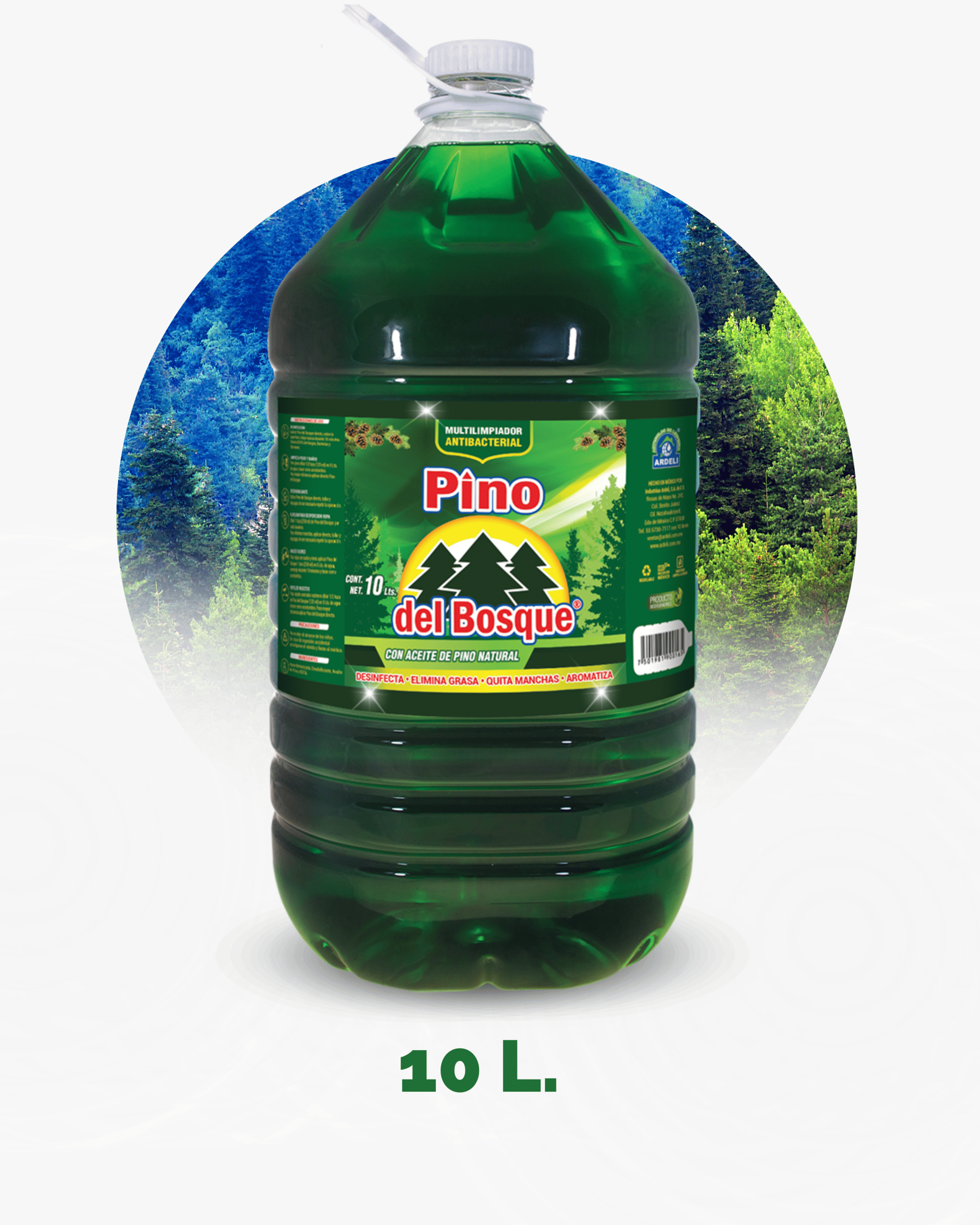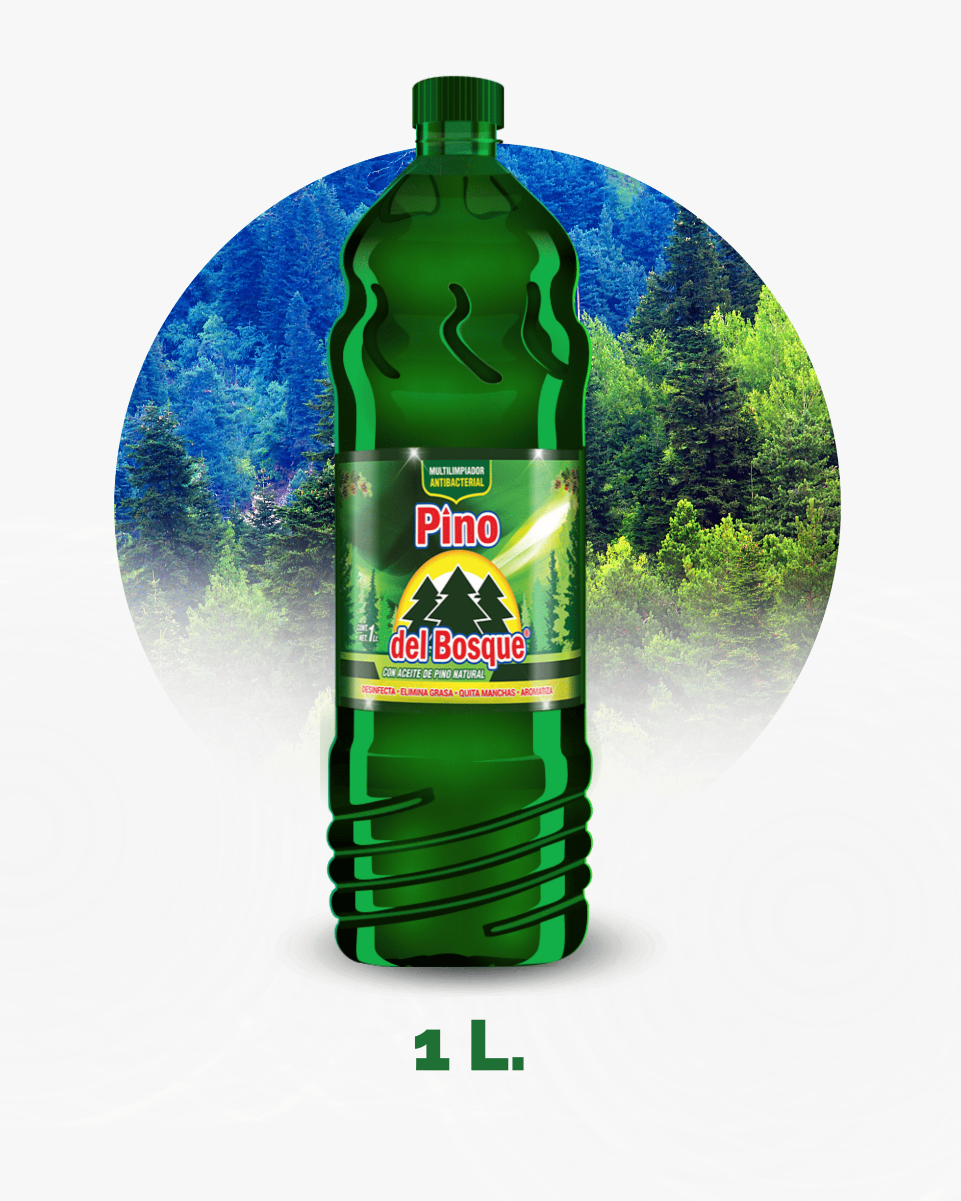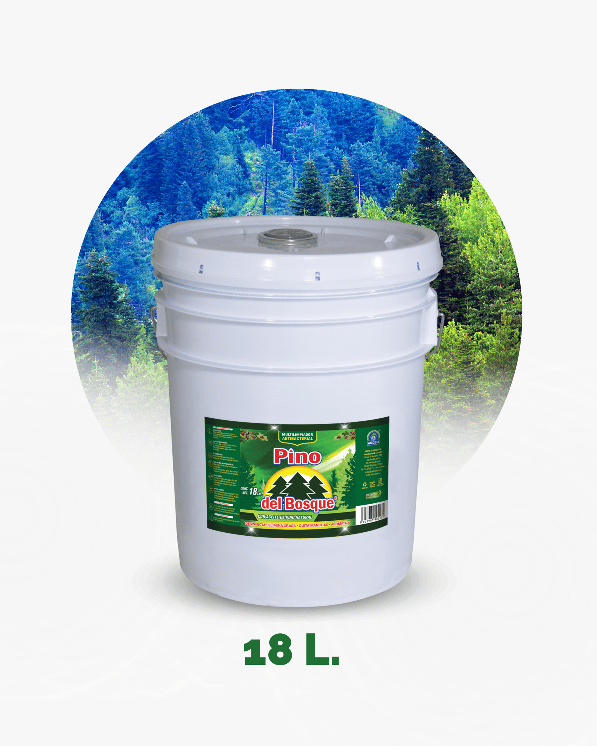 El Multilimpiador Pino del Bosque® es un producto que limpia, desinfecta y da brillos a los pisos de baños, cocinas y habitaciones, dejando un aroma agradable a pino, gracias a sus componentes actúan como un producto antibacterial.